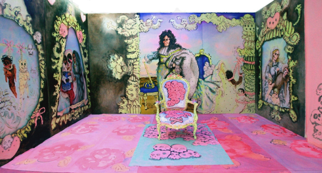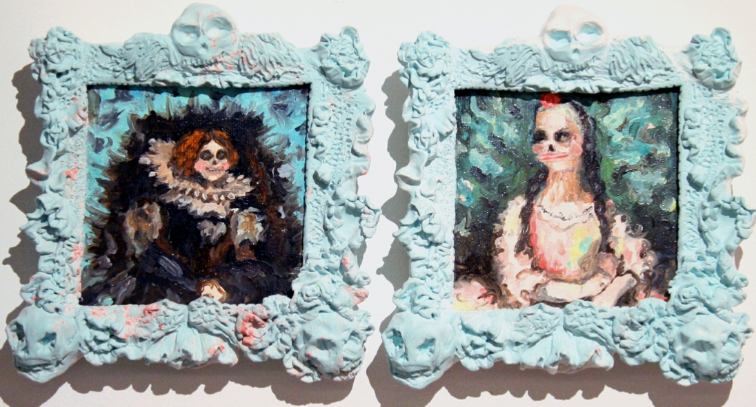 Christian Jaramillo calls himself a cultural hybrid having been grown up Bogota, Colombia, before he was moving to Europe more than 10 years ago. His personal cultural experience is inin fluenced from multiple diverse directions such as the indigenous ancestors of Colombia, the Spanish colonial era, an African spirit deriving from the slaves brought to South-America, as well as the central European culture he become acquainted with lately. This variety of emotional, historical and visual forces becomes closely faced to each other, mixed and even hybridized in his work. His paintings repetitively contain symbols such as skulls, birds, flowers, or certain animals which stay for life, freedom, nature, or in converse war, slavery, destruction. Often, the concept of a certain composition is initally derived from European master pieces of art going back to the Renaissance or Baroque era. Most of his works can be read in a narrative way pointing to several important aspects of Colombian history. Many contain a subtle criticism on regime and church concerning abuse of power, and also devastation of nature and wildlife are topics in his focus. His thoughts are devoted to the affliction of the poor and other minor groups. Although his work is somehow closely related to Colombian history and tradition, the topics, he is touching, are of general relevance and are preserving a frightening topicality even nowadays.