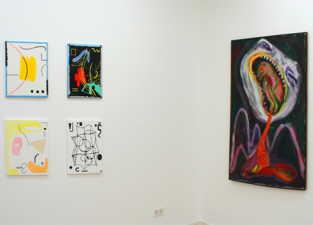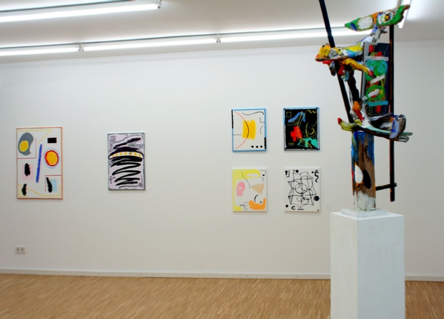 Konfrontiert werden jedoch nicht nur die unterschiedlichen Medien miteinander, sondern vielmehr die augenscheinlichen Polaritäten, welche im Werk immer wieder neben einander auftauchen. So stehen die für Hitzler bekannten expressiven, teils aggressiven, die Leinwand malträtierenden und figürlich betonten Bilder in konfrontierender Nachbarschaft zu abstrakt anmutenden, teils auf wenige geometrische Formationen reduzierten und in sich ruhenden Arbeiten.