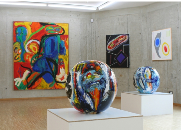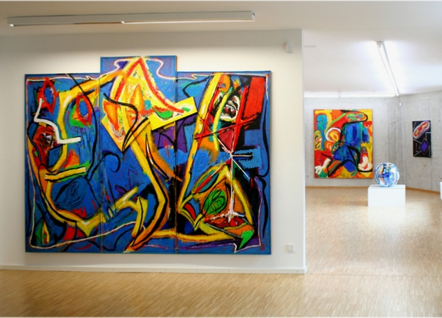 In der Ausstellung "Konfrontationen" werden über 40 Gemälde, Papierarbeiten, Skulpturen und Keramikarbeiten präsentiert, welche das breite künstlerische Repertoire von Franz Hitzler aufzeigen.